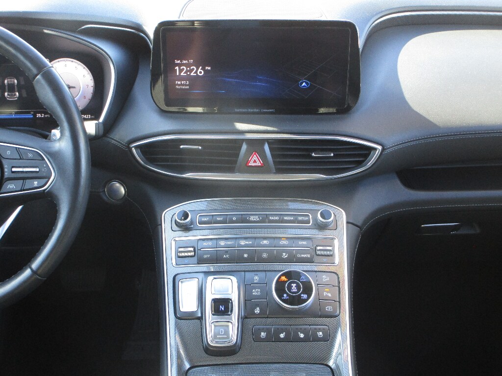 It features a hands-free Bluetooth phone system. Start this vehicle from inside with remote start. This model offers Automatic Climate Control for personalized comfort. The leather seats in this vehicle are a must for buyers looking for comfort, durability, and style. Protect this model from unwanted accidents with a cutting edge backup camera system. This vehicle stays safely in its lane with Lane Keep Assist. This unit offers Android Auto for seamless smartphone integration. This mid-size suv offers Apple CarPlay for seamless connectivity. The installed navigation system will keep you on the right path. Keep your hands warm all winter with a heated steering wheel in this Hyundai Santa Fe . The Hyundai Santa Fe gleams with an elegant silver clear coated finish. Set the temperature exactly where you are most comfortable in the vehicle. The fan speed and temperature will automatically adjust to maintain your preferred zone climate. Conquer any rainy, snowy, or icy road conditions this winter with the all wheel drive system on the Hyundai Santa Fe.